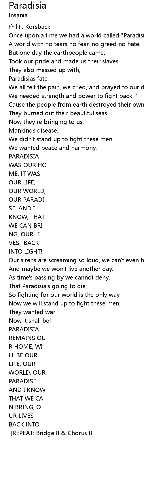 | Song | Paradisia |