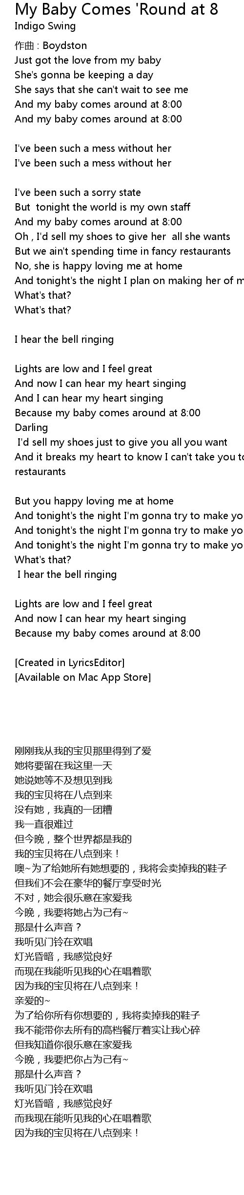 | [00:43.474] | And my baby comes around at 8: 00 |