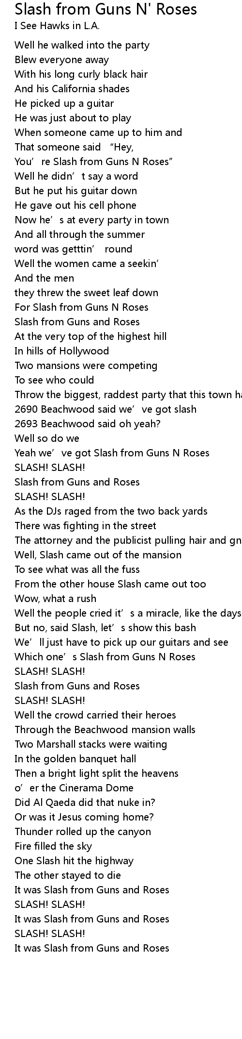 | Song | Slash from Guns N' Roses |