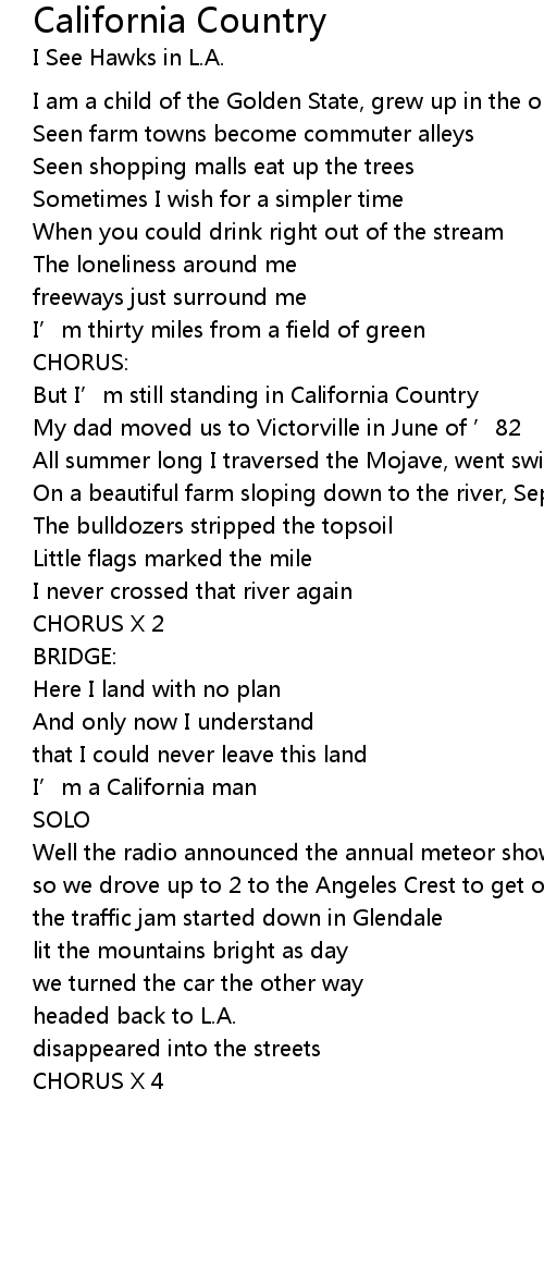 | But I’m still standing in California Country | |