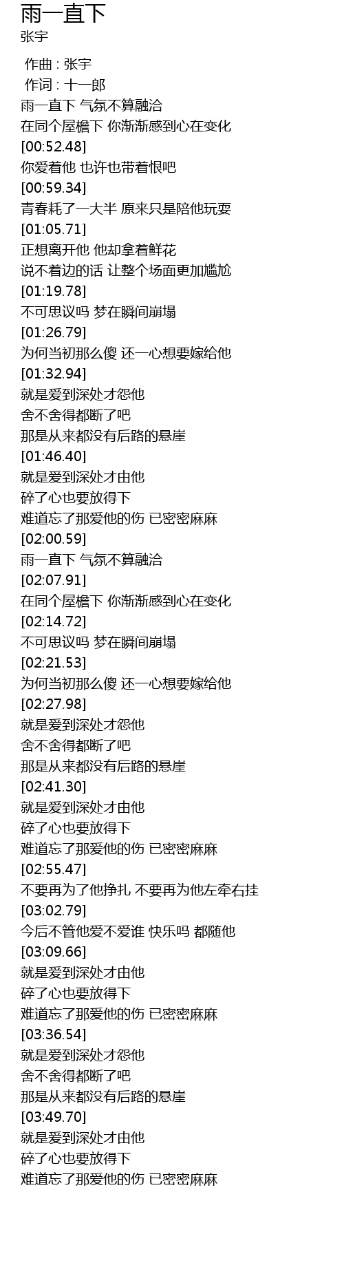 | [00:00.00] | zuò qǔ : zhāng yǔ |