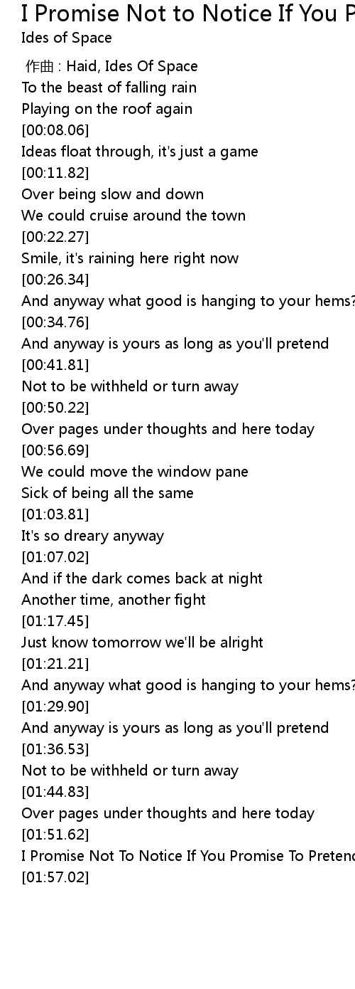 | [01:53.26] | I Promise Not To Notice If You Promise To Pretend Ides Of Space |