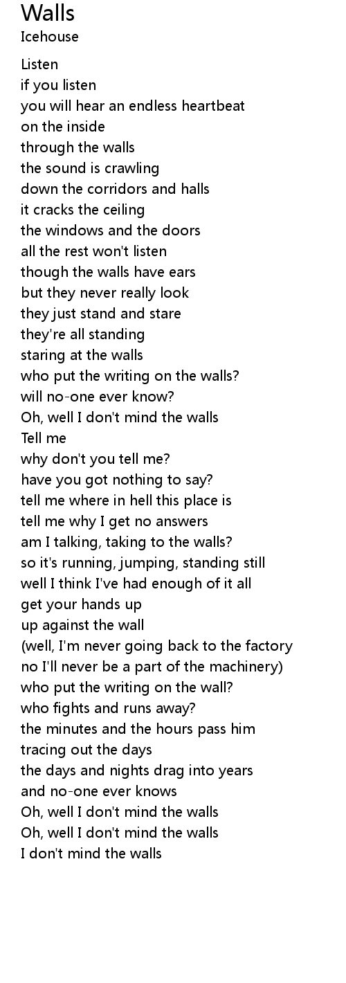 Oh, well I don't mind the walls |