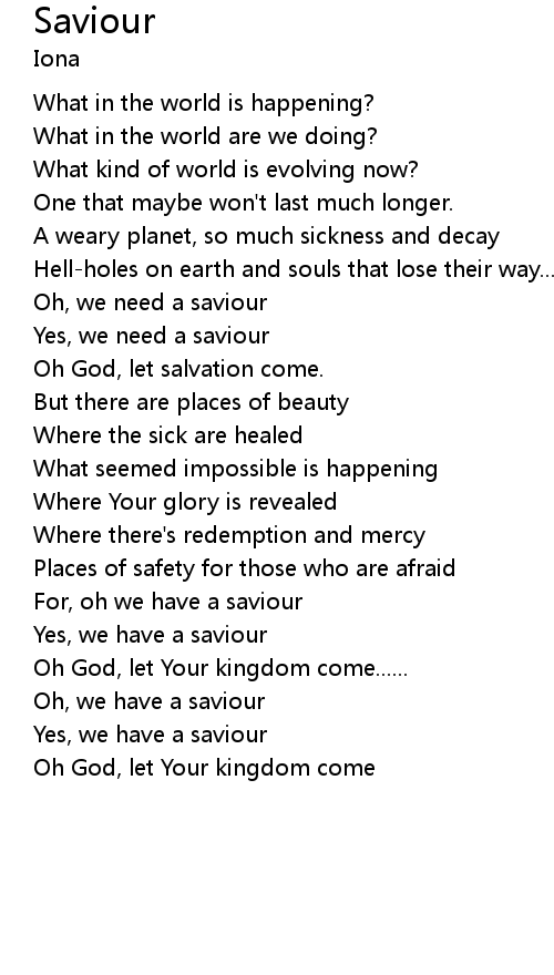 Oh, we need a saviour |