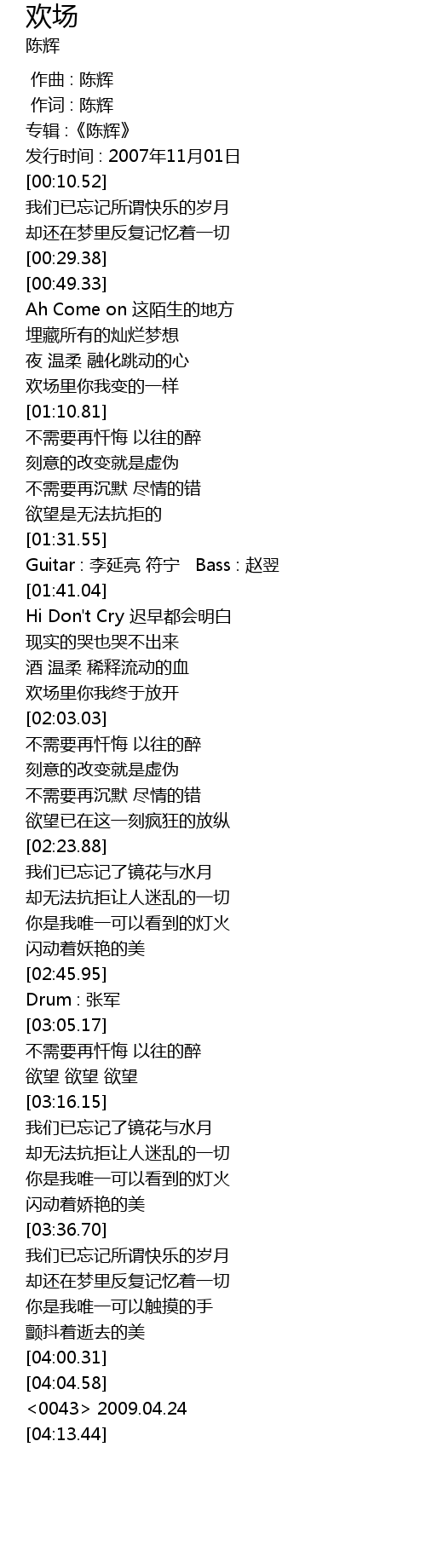 | [01:06.57] | huān chǎng lǐ nǐ wǒ biàn de yí yàng |