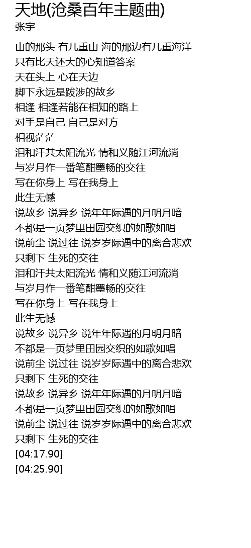 | [04:02.46] | 说前尘 说过往 说岁岁际遇中的离合悲欢 |