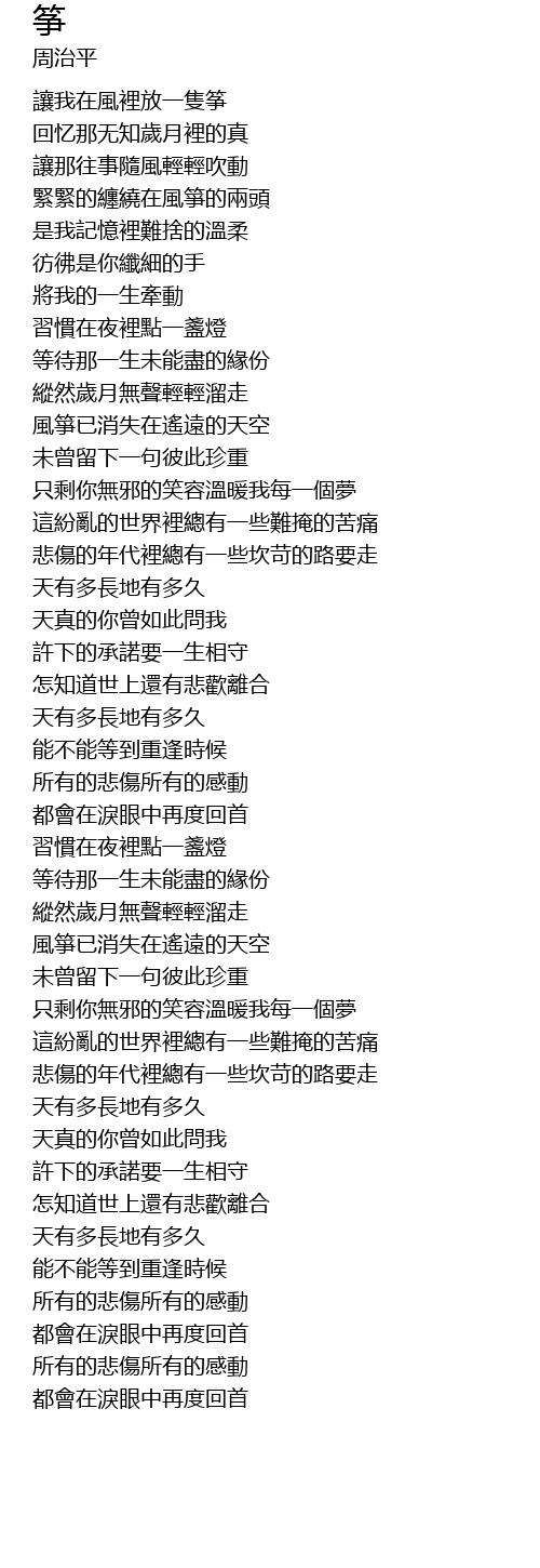 | [01:15.0] | 風箏已消失在遙遠的天空 |