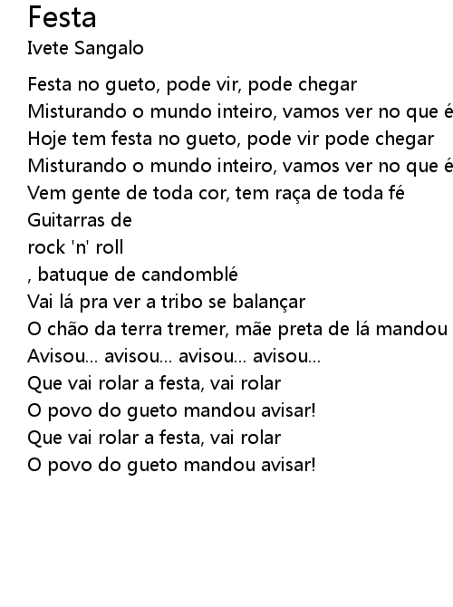 | Hoje tem festa no gueto, pode vir pode chegar | |