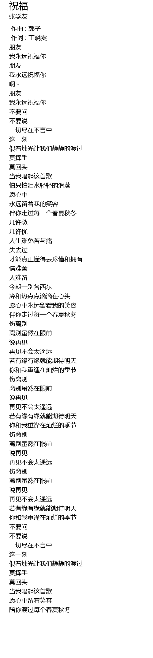 | [00:03.320] | wǒ yǒng yuǎn zhù fú nǐ |