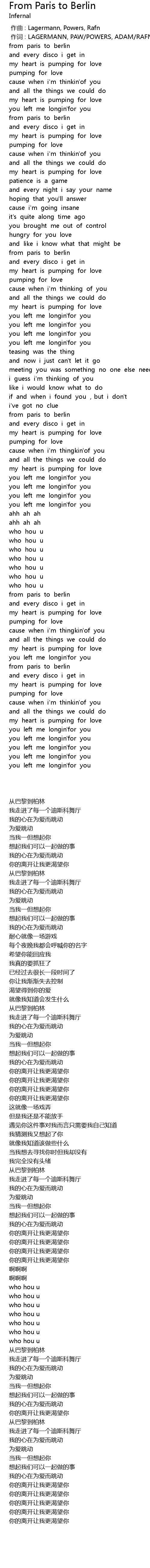 | [00:01.00] | 作词 : LAGERMANN, PAW/POWERS, ADAM/RAFN, LINA |