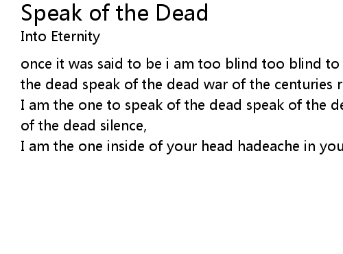 | once it was said to be i am too blind too blind to see i am the one to speak of the dead speak of the dead war of the centuries raping my mind exposing my soul | |