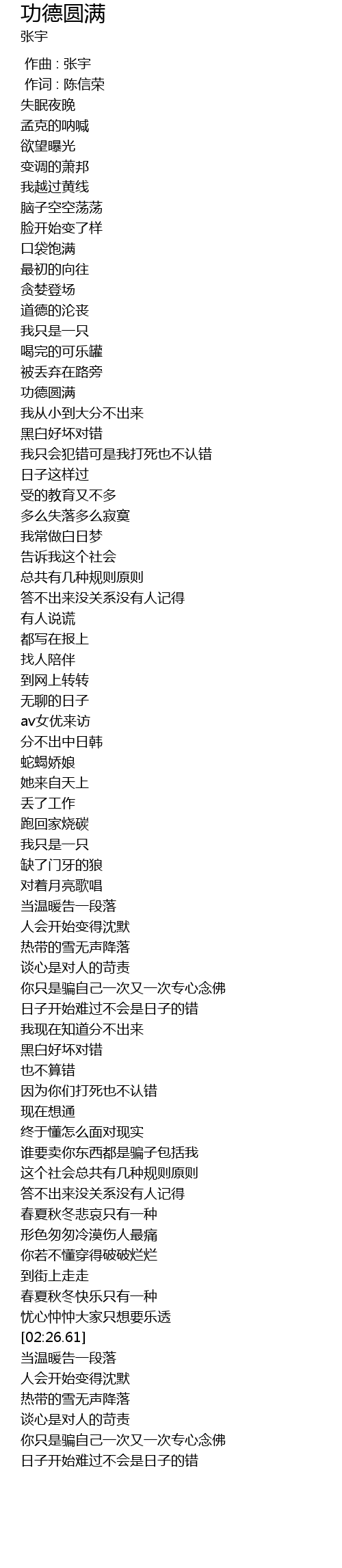 | [00:00.00] | zuo qu : zhang yu |