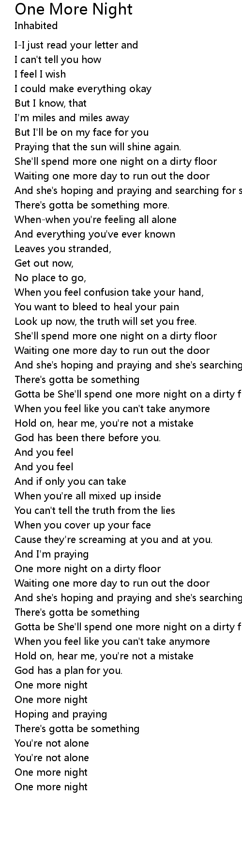 One more night |