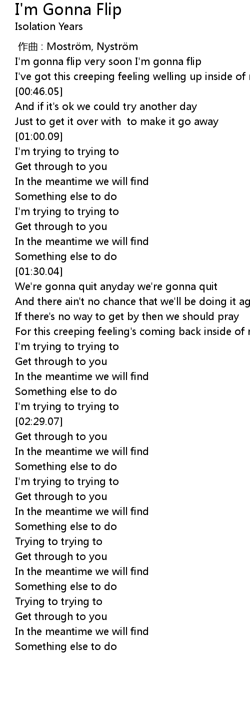 | [00:32.26] | I' m gonna flip very soon I' m gonna flip |