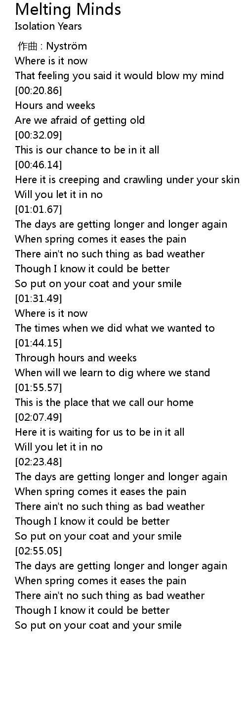 | [00:47.26] | Here it is creeping and crawling under your skin |