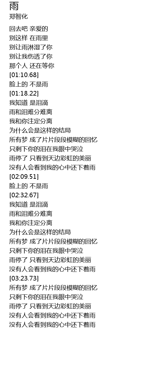 | [01:11.38] | liǎn shàng de bú shì yǔ |