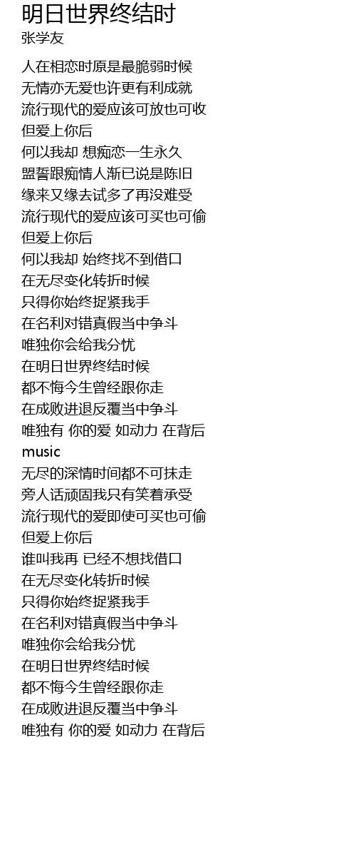 | [01:36.0] | zai ming ri shi jie zhong jie shi hou |
