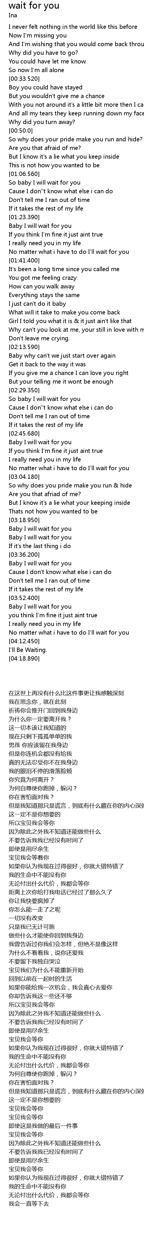 | [03:36.470] | Baby I will wait for you |