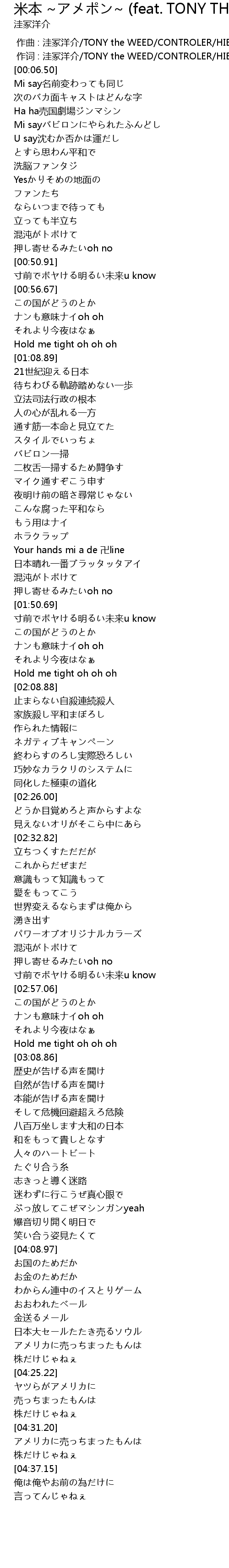| Song | 米本 ~アメポン~ (feat. TONY THE WEED) |