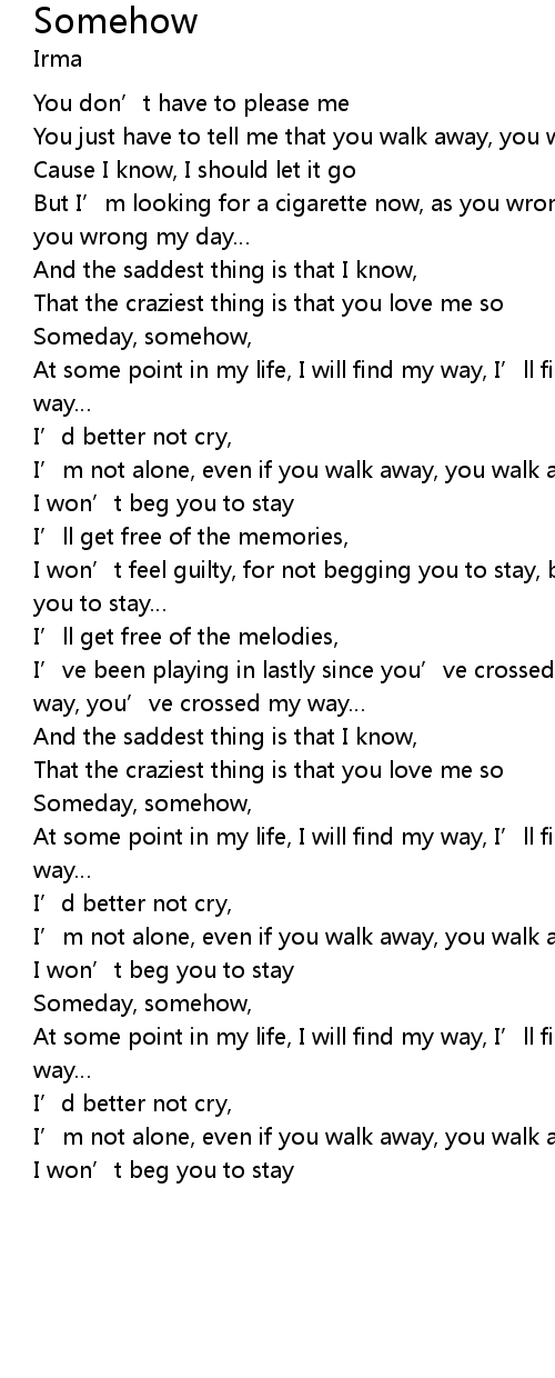 | Someday, somehow, | |