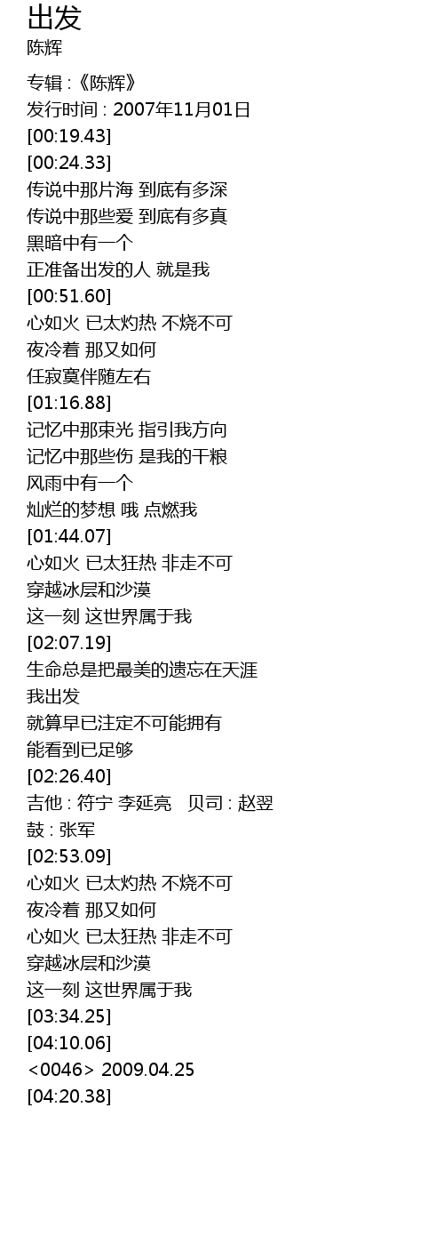 | [01:45.28] | 心如火 已太狂热 非走不可 |