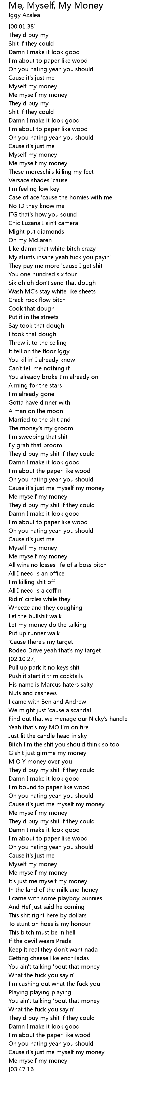 Cause it's just me myself my money |
