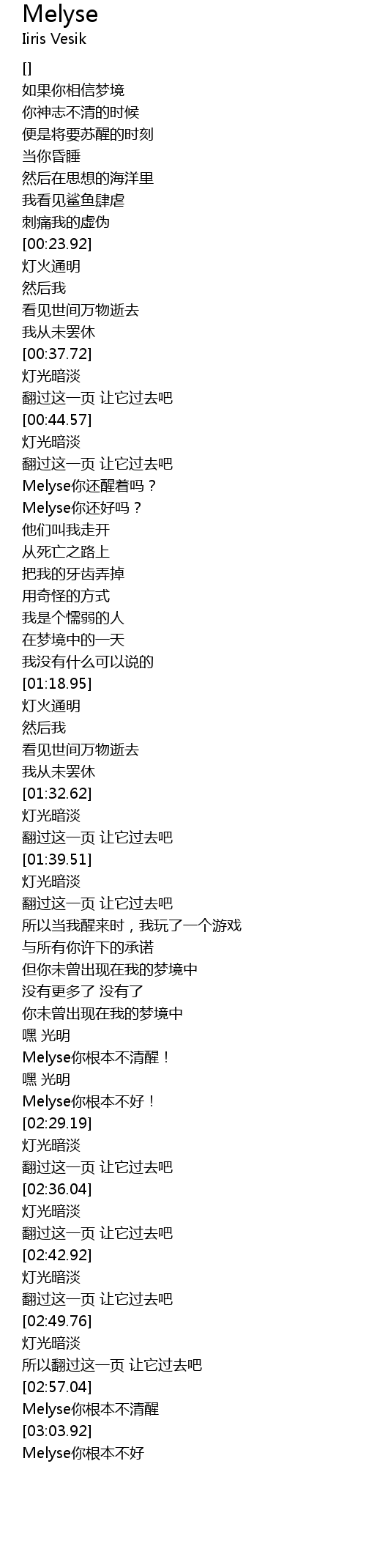 | [02:58.98] | Melyse你根本不清醒 |