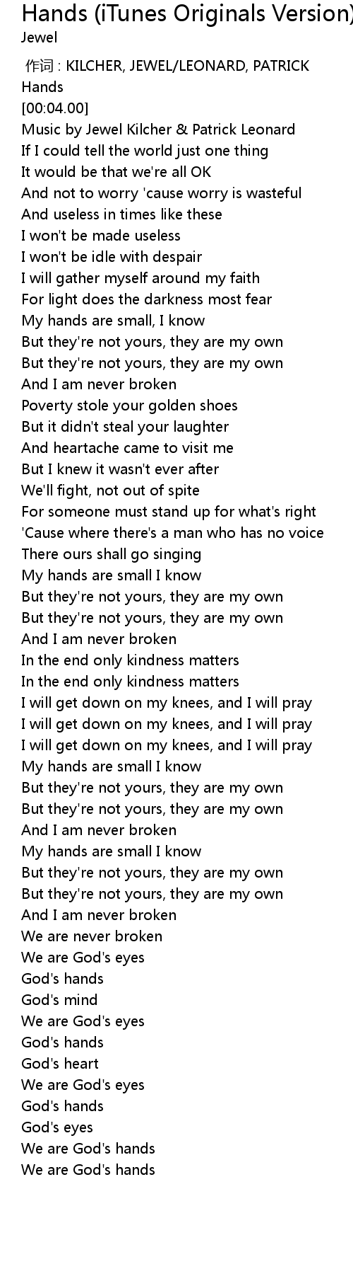 | [00:00.00] | 作词 : KILCHER, JEWEL/LEONARD, PATRICK |