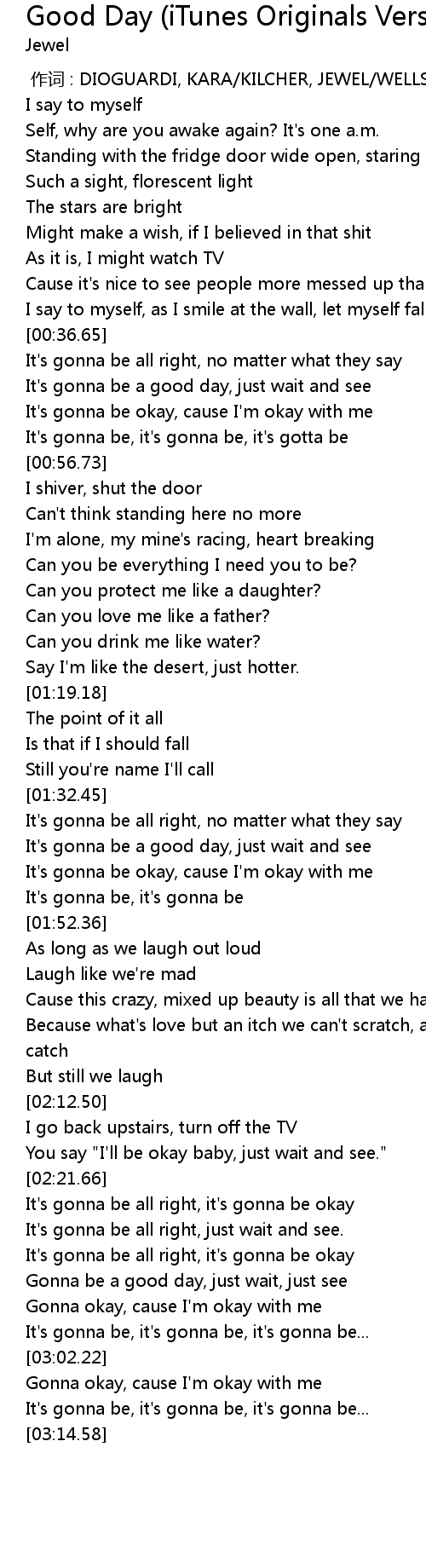 | [00:43.09] | It's gonna be a good day, just wait and see |
