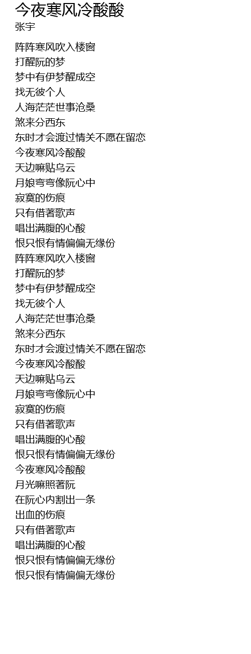| [02:47.270] | jīn yè hán fēng lěng suān suān |