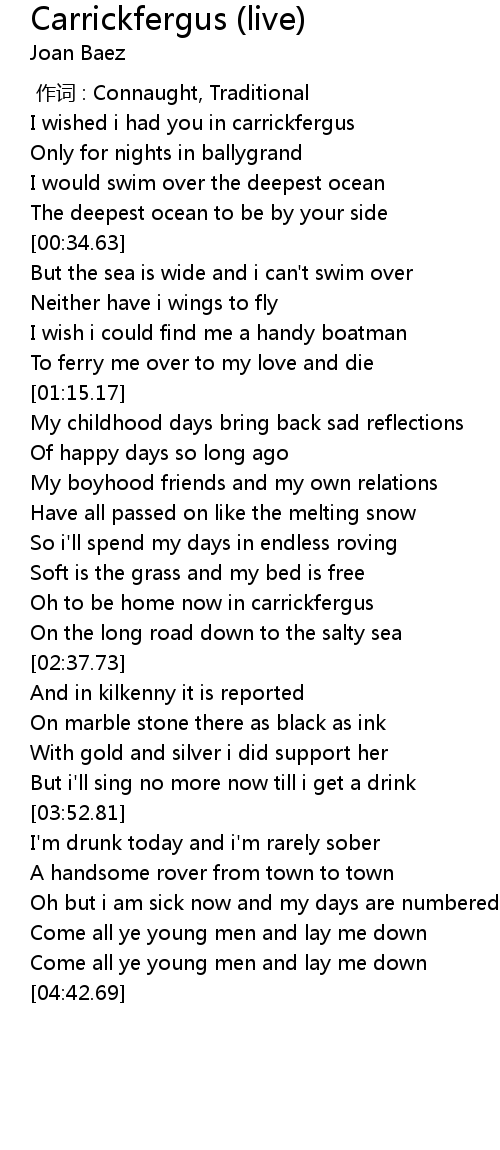 | [02:18.70] | Oh to be home now in carrickfergus |