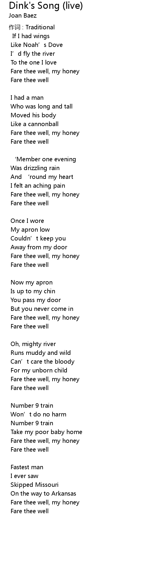 Dink's Song (live) Lyrics