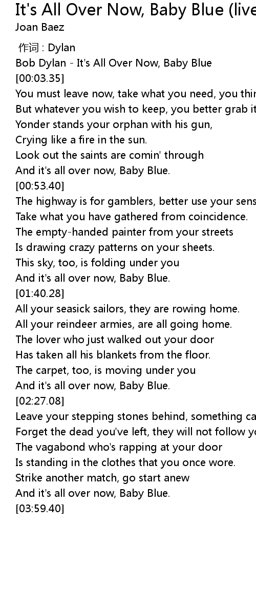 | [01:35.40] | And it' s all over now, Baby Blue. |