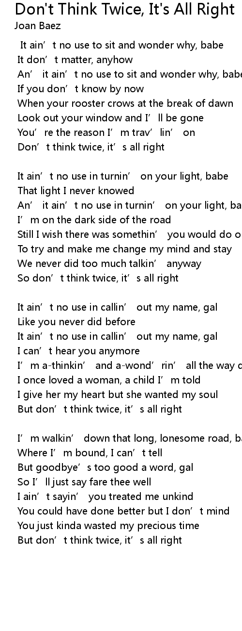 | An’ it ain’t no use to sit and wonder why, babe | |