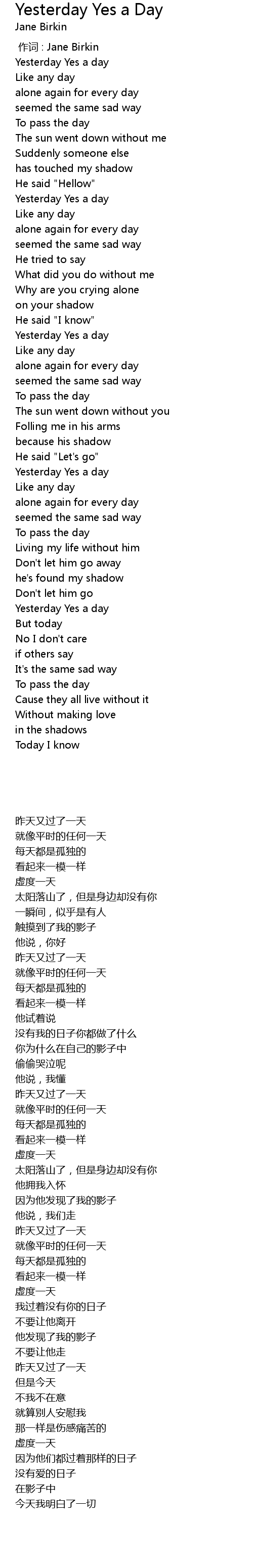 | [00:35.22] | Yesterday Yes a day |