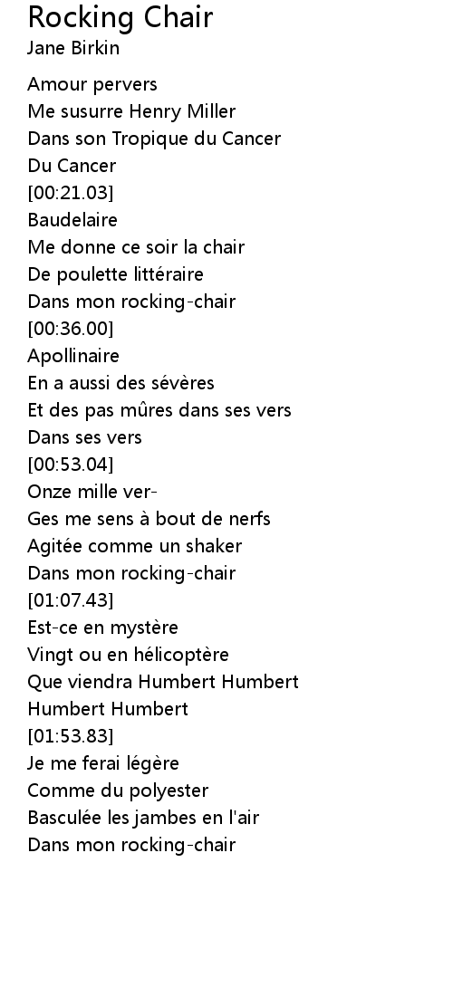 | [00:33.00] | Dans mon rockingchair |