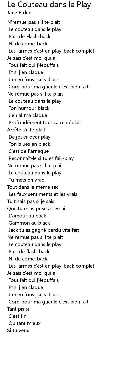 | Song | Le Couteau dans le Play |