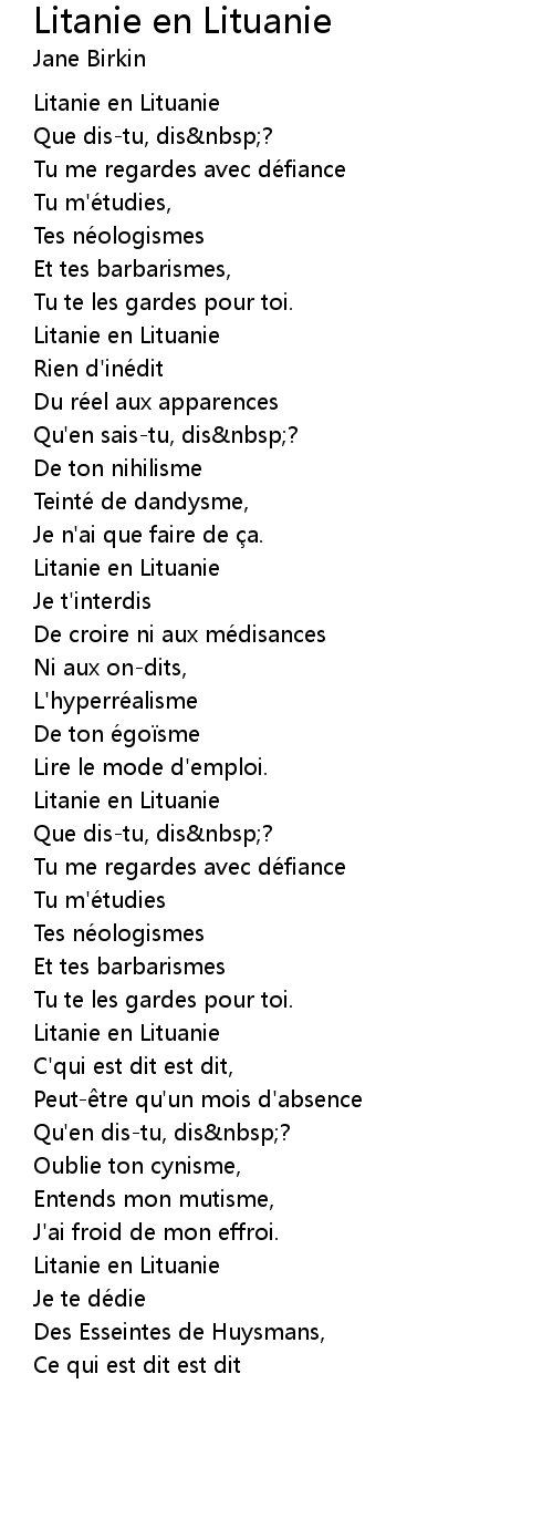 | Song | Litanie en Lituanie |