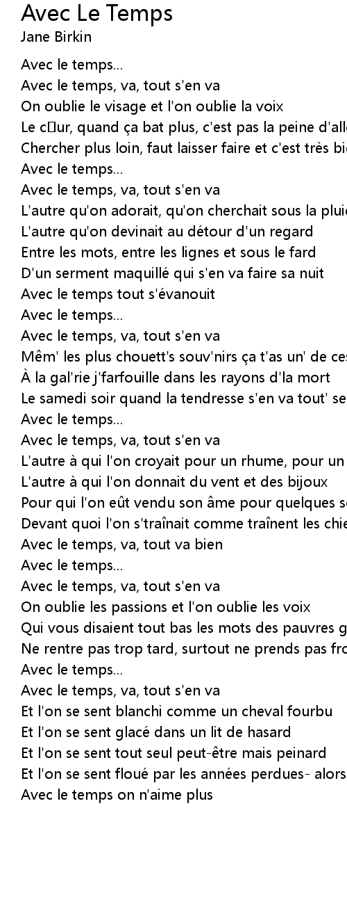 | Avec le temps, va, tout s' en va | |
