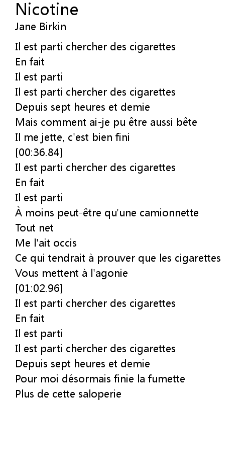| [00:14.84] | Il est parti chercher des cigarettes |