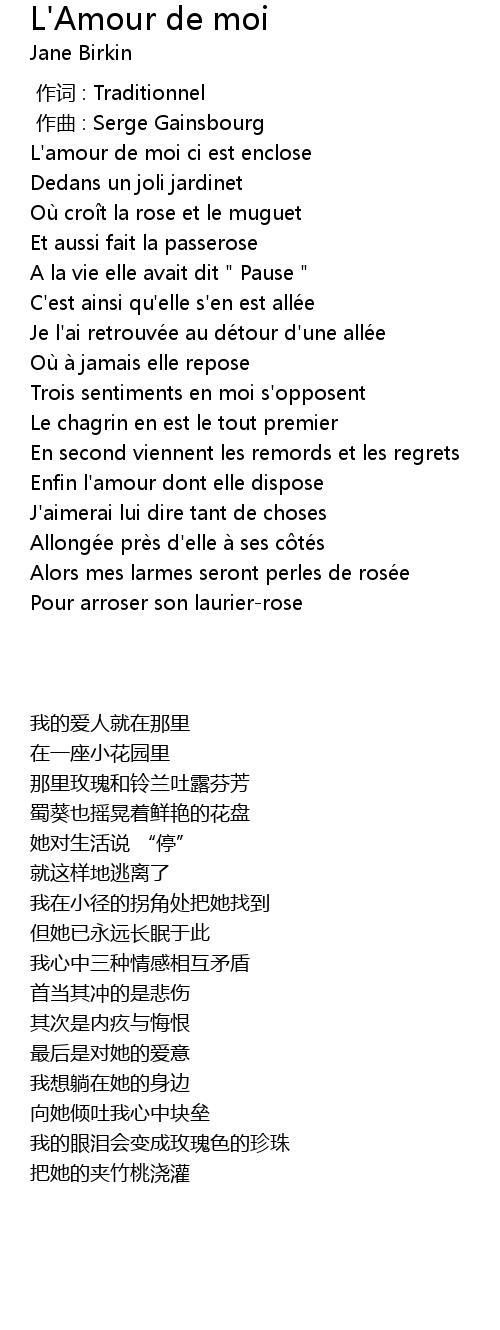 | [00:01.000] | 作曲 : Serge Gainsbourg |