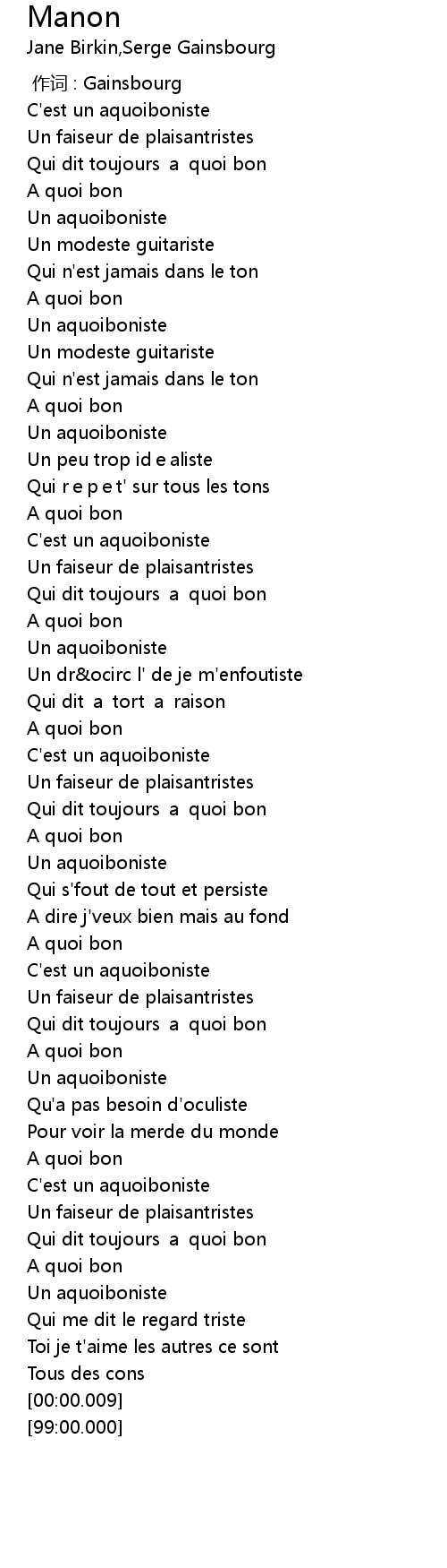 | [01:59.07] | C' est un aquoiboniste |