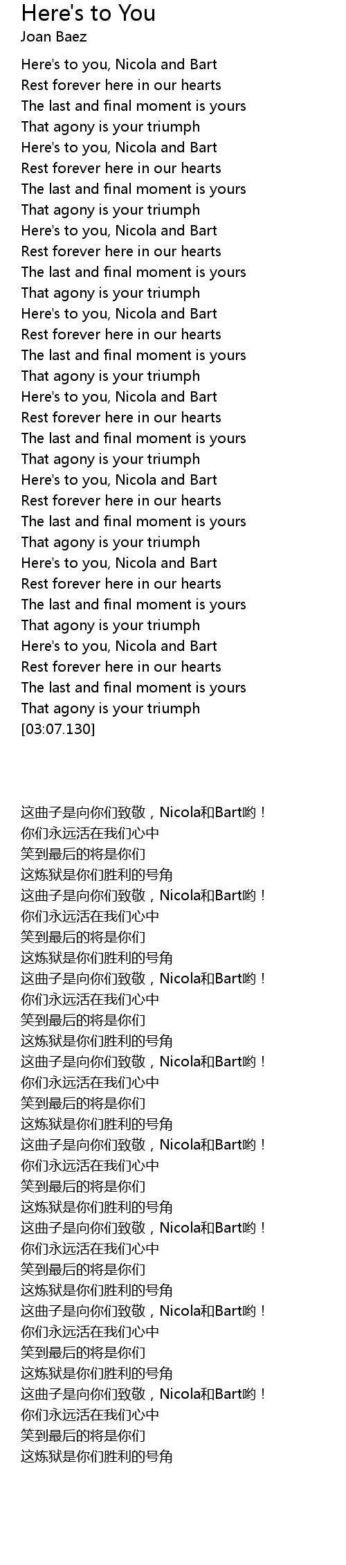 Here's to You Lyrics