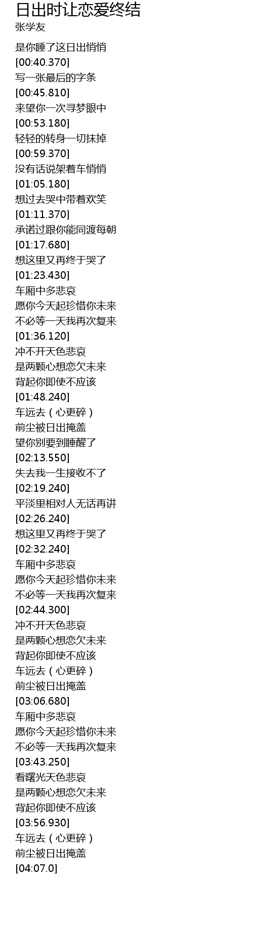 | [03:57.750] | 车远去(心更碎) |