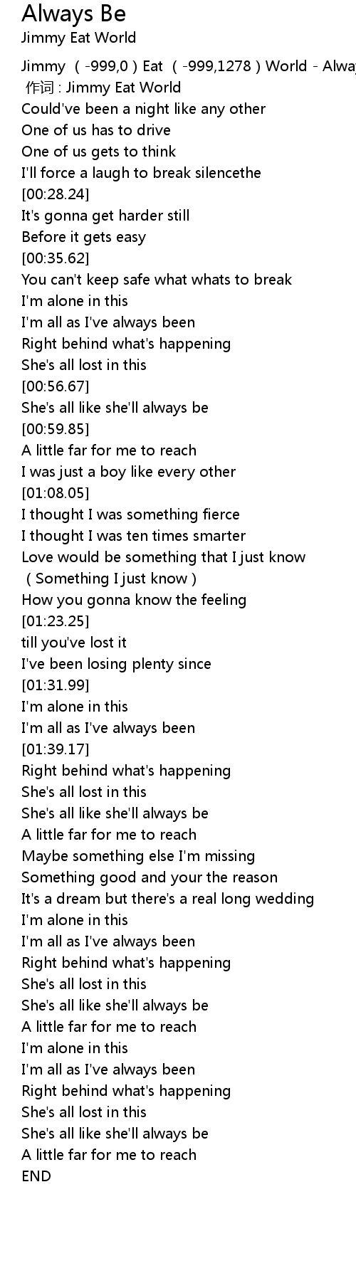 | [00:00.00] | 作词 : Jimmy Eat World |