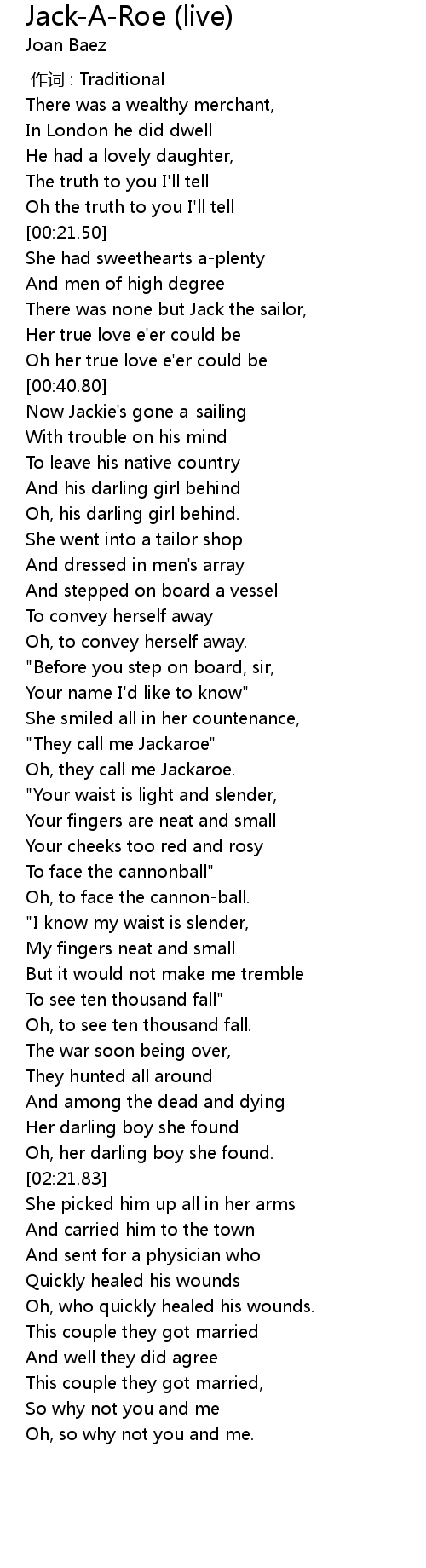 | [00:42.07] | Now Jackie's gone a-sailing |