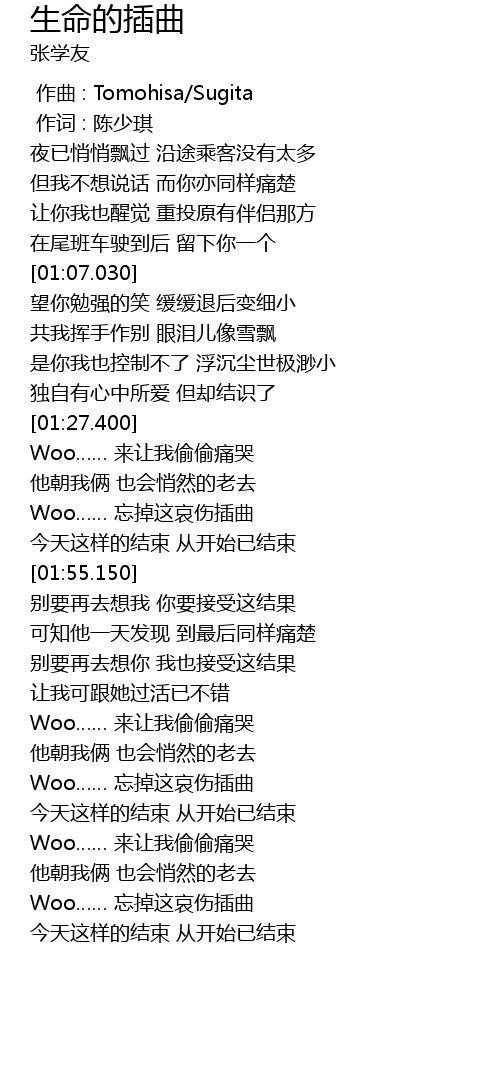 | [01:41.020] | Woo…… 忘掉这哀伤插曲 |