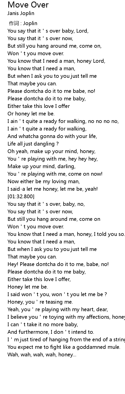 | [00:18.000] | Won t you move over. |