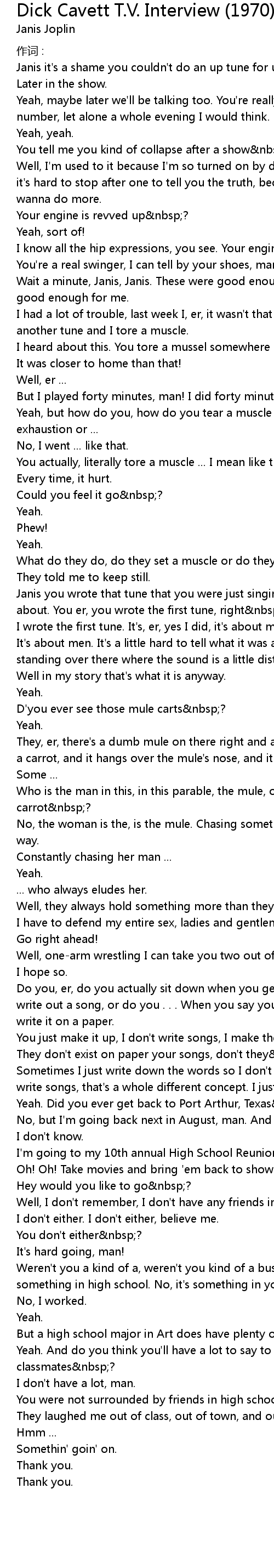 | Janis you wrote that tune that you were just singing like we just agreed to ask about. You er, you wrote the first tune, right nbsp? | |