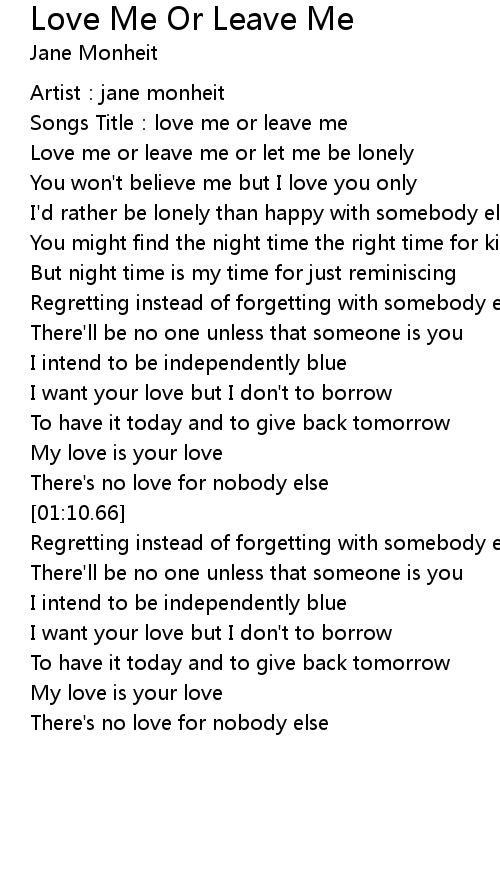| [00:10.29] | Love me or leave me or let me be lonely |